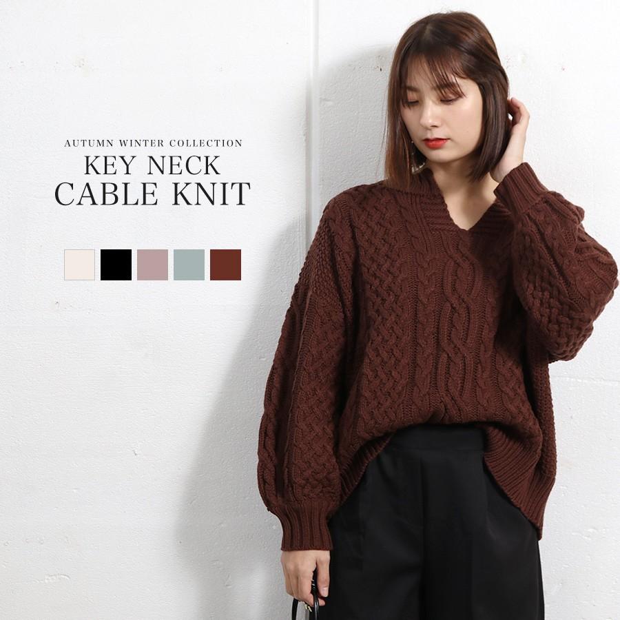 ニット 秋 ニット レディース ケーブル編み トップス レディース オーバーサイズ ケーブル編みニット ラウンドネック ニットセーター 秋冬 Nts 016 ふくふくの木